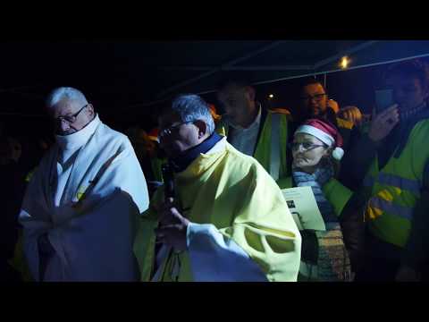 A Somain dans le Nord, un prêtre a décidé de célébrer la messe de Noël en compagnie des Gilets jaunes, près d'un rond-point qu'ils occupaient. Une initiative chaleureusement accueillie ; environ 200 personnes ont assisté à la cérémonie.
