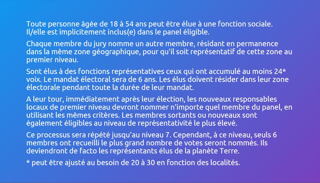 Il y a une modalité démocratique qui a été imaginée par un jeune allemand lors d'une demande de propositions, qui est très pertinente sur le plan mathématique, et qui consiste à rendre légitime les hiérarchies :