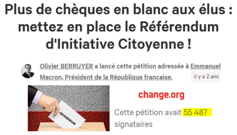 Des années d'analyse de notre système politique sur ce site m'ont depuis longtemps conduit à soutenir le Référendum d'Initiative Citoyenne (RIC). Comme en 2012 dans le livre Les faits sont têtus où j'écrivais : « Nous lançons ainsi dans le débat public quelques propositions [...] : Référendum d'Initiative Citoyenne » ; ou en rédigeant un billet après l'élection Présidentielle de 2017, et en lançant une pétition défendant le RIC, qui a recueilli plus de 50 000 signatures.