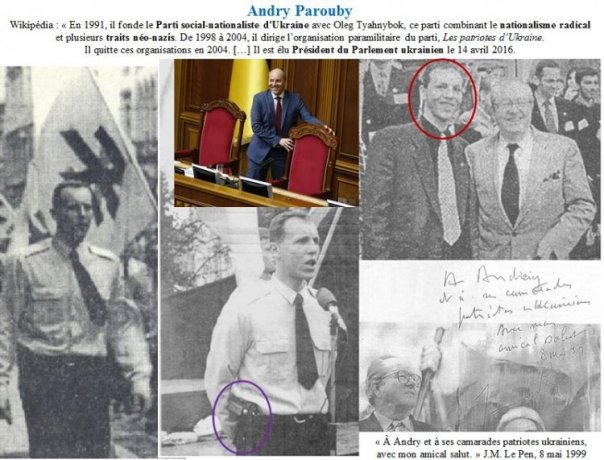 1/ En septembre 2018, Andry Parouby, président de la Rada (Le parlement Ukrainien) est reçu avec les honneurs de la République française par François De Rugy, alors Président de l'Assemblée nationale, ex Vert, ex PS, et actuel LREM, avant de devenir Ministre de la Transition écologique. Or Parouby, à son retour de France, ne s'est-il pas précipité sur le plateau d'une TV ukrainienne de grande écoute pour qualifier Adolf Hitler de « plus grand démocrate de l'Histoire » ? Parouby, fondateur du Parti social-nationaliste d'Ukraine avec Oleh Tyahnybok, qui deviendra plus tard Svoboda ? Selon le quotidien allemand Der Spiegel, entre autres références au nazisme, le titre « social-national Parti » était une référence intentionnelle au « parti National Socialiste » d'Adolf Hitler. Son emblème, le Wolfsangel, était d'ailleurs l'un des symboles initiaux du parti nazi. Dès lors, une question se pose : Qu'a écrit le journal « antifasciste » Le Monde sur la visite de Parouby à Paris ? Pour le Décodex, visiblement rien. Et pour Le Monde ? Andry Parouby est inconnu au bataillon.