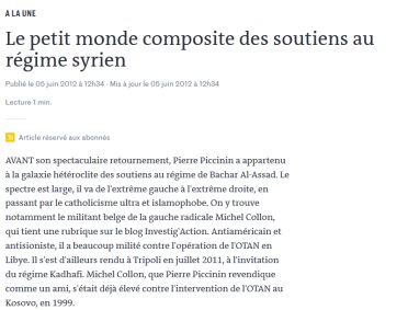 Sans jamais vérifier le bien-fondé des allégations de Cameron, Sarkozy et Juppé, les grands médias français étaient unanimes. Pour ces derniers il était impératif de punir Kadhafi qui à leur goût défiait la coalition occidentale depuis trop longtemps. La propagande de guerre impulsée par le duo Sarkozy - Juppé fut entre autre reprise par le journal Le Monde. Dans un billet antérieur intitulé « Médias français : Cinq cas de journalistes acquis à la doctrine néoconservatrice«, nous nous étions efforcés de décrypter la méthode de Christophe Ayad, l'actuel chef du service international du Monde.
