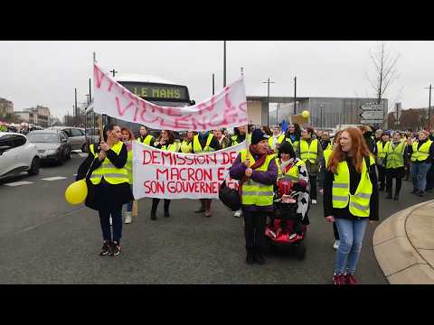 Environ 300 femmes en gilet jaune ont ainsi participé à une marche pacifique au Mans (Sarthe), dénonçant les violences et appelant à la «démission de Macron et de son gouvernement», selon un correspondant de l'AFP. Le cortège, d'après l'agence de presse, a défilé le long des quais dans une ambiance bon enfant, derrière une banderole sur laquelle on pouvait lire : «Macron entends-tu le peuple pleurer / Femmes en colère / Pensez à vos mères seules, elles gèrent le pouvoir / N'oubliez pas que vous êtes nées».