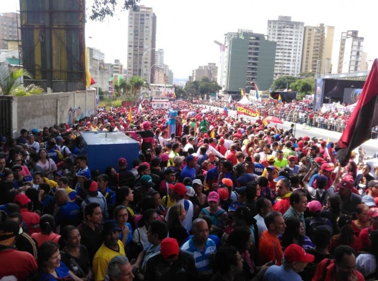 À l'extérieur du Palais de Justice, une foule nombreuse attendait le président. Au moment du serment, beaucoup ont levé la main, en signe de loyauté. « On dirait qu'ils se sentent un peu présidents » commente un journaliste étranger. En effet. La population est venue en masse. L'avenue Baralt, l'une des plus importantes du centre de Caracas, était comble. L'atmosphère était solennelle et calme. Vêtus de rouge, comme le veut la tradition chaviste, les vénézuéliens étaient arrivés tôt depuis diverses régions du pays.