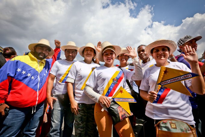 Difficile de ne pas remarquer l'ouvrier Wilmer José Valero, habillé en Che Guevara, et portant sur son dos un tableau du visage du libérateur Simón Bolívar : « Ces symboles sont importants pour le Venezuela et pour le monde, moins pour l'Empire qui veut humilier le peuple vénézuélien mais nous ne le permettrons pas » explique cet habitant de Caracas.