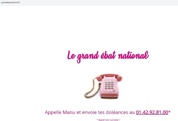 Le site grandebatnational.fr présentant un téléphone rose suggère d'appeler «Manu» et d'exprimer ses doléances en appelant un numéro qui n'est autre que celui de l'Elysée.