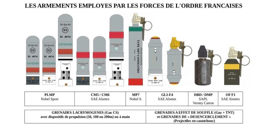 De très nombreux citoyens de tous âges, y compris des mineurs lycéens et des retraités, sont victimes de graves blessures, infirmités, mutilations et décès causés par les tirs de ces armes qui figurent encore à ce jour dans l’arsenal légal du maintien de l’ordre.
