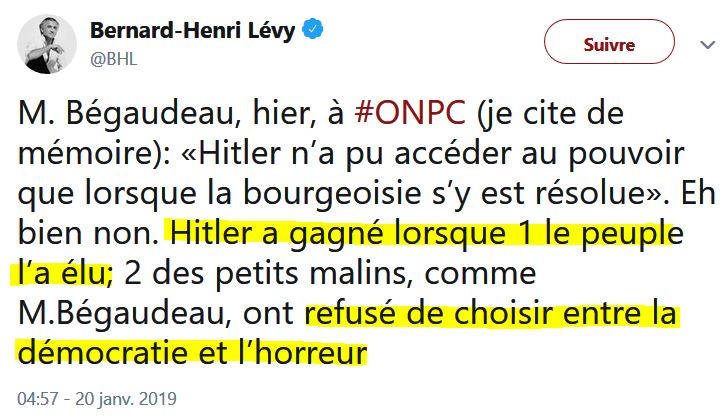 C'est la semaine, avec les leçons d'Histoire de BHL (pour les très très nuls - la vérité est ici) :