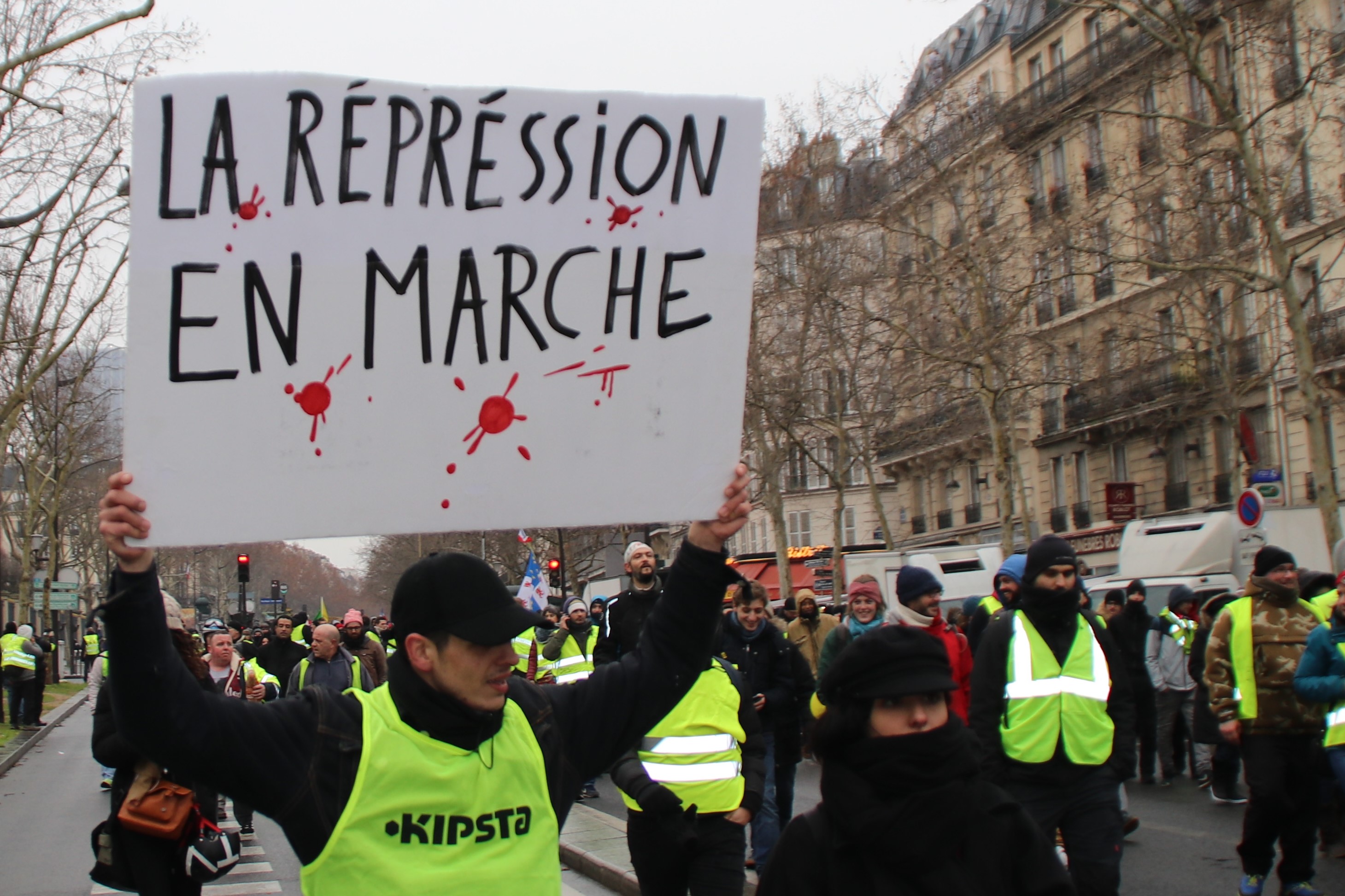 Celle-ci n'a pas faibli. Bien au contraire, on enregistre 4.000 manifestants sur Bordeaux, 2.500 sur Marseille comme à Grenoble ou encore 3.000 à Caen. A Toulouse il y a eu 10.000 personnes, un record pour le mouvement en province, avec comme banderole en tête de cortège « Tes hauts et débats, on n'en veut pas, Macron dégage ».