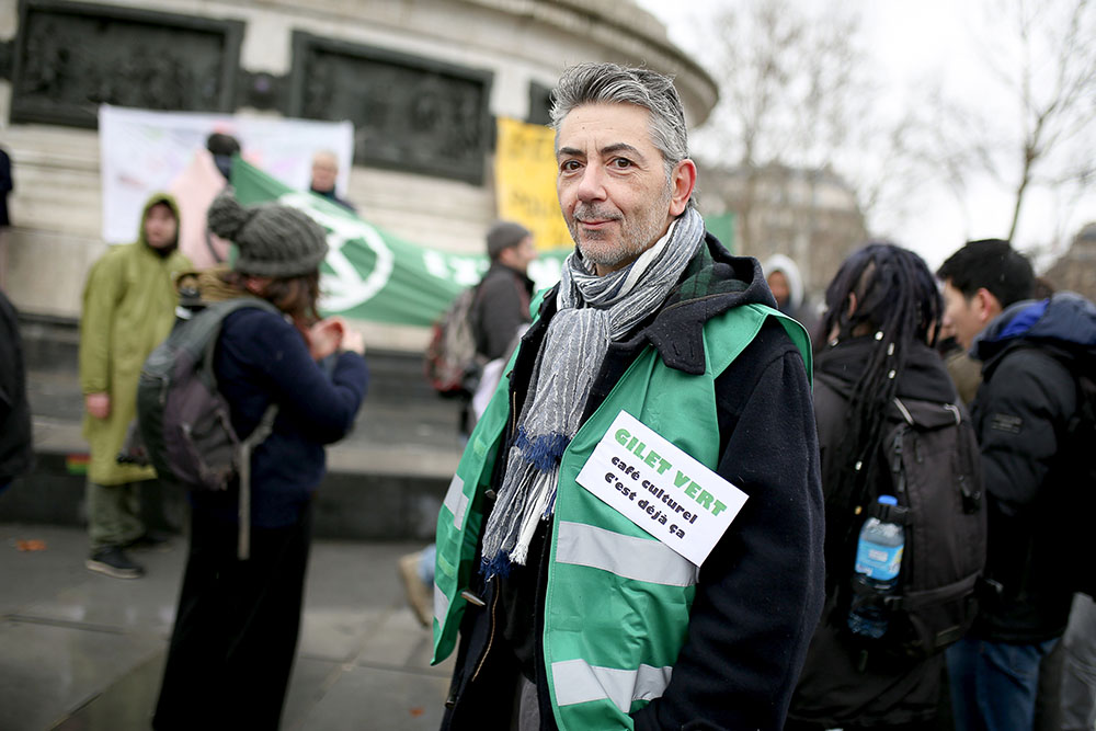 Gilet vert sur les épaules, Stéphane Cuttaïa est venu spécialement de Seine-et-Marne, où il est responsable d'un café culturel associatif nommé C'est déjà ça, à Saâcy-sur-Marne. Il se dit « là pour défendre et relier la justice sociale, l'exigence démocratique et l'urgence écologique et climatique », comme le mouvement des Gilets verts qu'il a contribué à initier. « Toutes nos décisions, à l'échelon local ou national, devraient être guidées par les enjeux écologiques, estime Stéphane. On n'a pas le choix de toute façon, on va y venir de gré ou de force. »