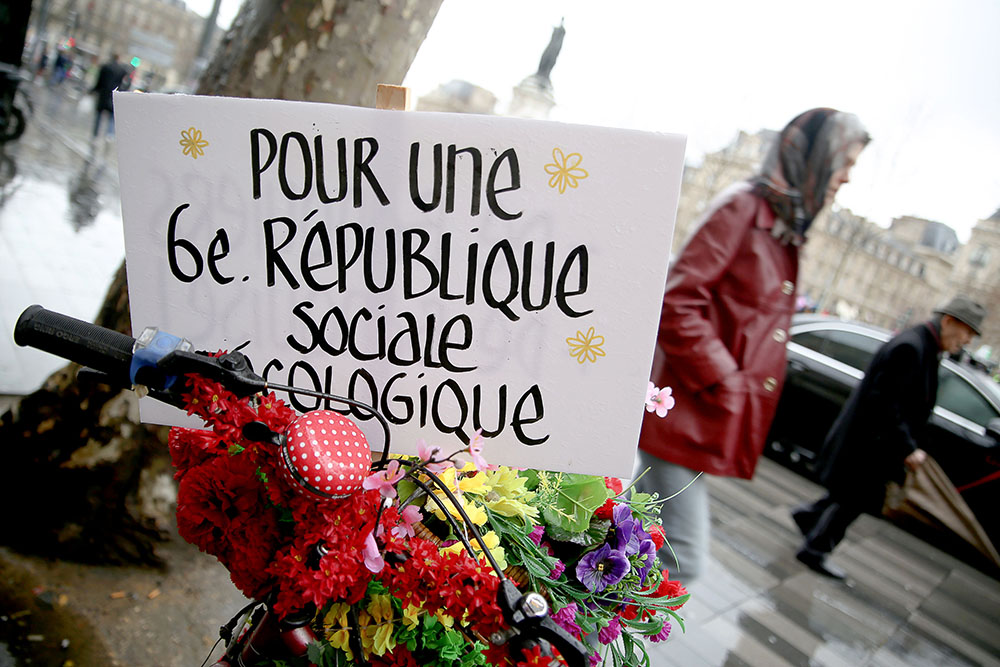 Sophie, agrippée à une pancarte fleurie, est également enchantée par cette forme de mobilisation. « Chacun peut apporter sa petite graine, dit cette participante assidue aux rassemblements pour le climat. Même si on peut avoir du mal à s'entendre sur certains points, c'est la somme de nos idées qui permet de faire émerger des solutions robustes. C'est ça la démocratie ! »