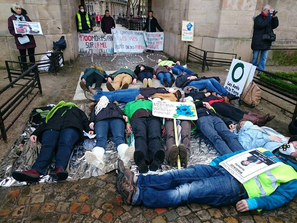 De l'autre côté de la frontière, à Lille, des citoyens se sont étendus sur le sol pavé de la porte de Paris. Ce die-in le nom de cette action de désobéissance civile consistant à simuler la mort avait pour but de dénoncer les morts prématurées causées par la pollution de l'air. Selon Santé publique France (SPF), la pollution serait responsable de près de 1.700 morts prématurées, chaque année, dans l'agglomération lilloise.