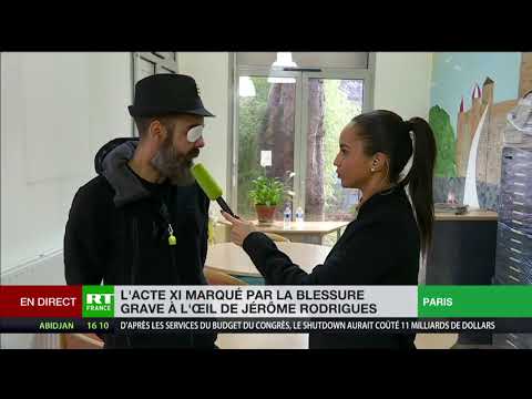 Jérôme Rodrigues, gravement blessé à l'œil lors de l'acte 11 du mouvement des Gilets jaunes, s'est exprimé en exclusivité sur RT France. Il dit ignorer s'il recouvrera un jour la vision de son œil droit atteint.