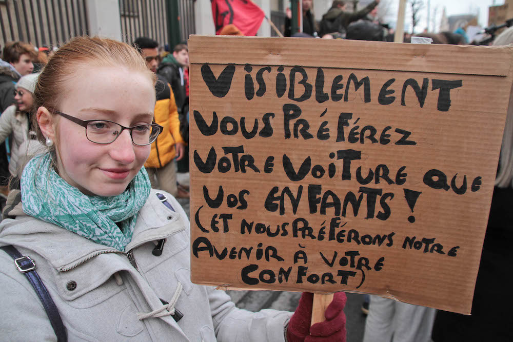 « Nous avons un rôle à jouer, pas en tant qu'élèves, mais en tant qu'êtres humains », explique Fanny, 13 ans, venue manifester avec sa camarade Camille et la maman de celle-ci. « Que voulez-vous qu'on leur dise ? C'est leur avenir aussi », dit Claire, la mère de famille. Les deux adolescentes, originaires d'Ottignies, dans le Brabant wallon, sèchent pour la première fois les cours pour participer à la manifestation. « Je crois que la jeunesse a un vrai pouvoir de mobilisation. Je les soutiens parce que je pense qu'elles apprennent beaucoup en venant ici », explique Claire.