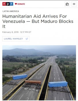 - L'aide humanitaire arrive au Venezuela - Mais Maduro la bloque (NPR, 2/8/19)