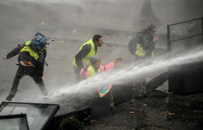 La question de la violence, policière et du côté des Gilets Jaunes, est maintenue au centre des manifestations des Gilets Jaunes, tentant presque de faire oublier le fond du problème : le rejet d’un système politico-idéologique par trop inéquitable. Des casseurs de tous poils et étiquettes se promènent tranquillement autour des manifestations des Gilets Jaunes, suivis par certains policiers, sans être interpelés alors qu’ils commettent de nombreuses infractions – en flagrant délit. En revanche, la violence latente qui en découle « justifie » le recours devenu normal aux canons à eau (pourtant interdits pendant des années), le gazage systématique comme s’il s’agissait d’insectes nuisibles dont il faut se débarrasser, les grenades de désencerclement qui ne cessent de blesser hommes, femmes, manifestants et journalistes.