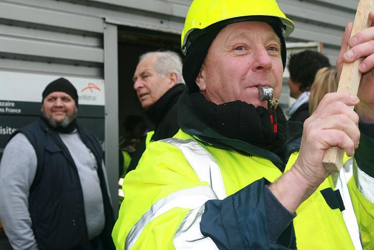 Le 5 février, deux ronds points ont été bloqués sur le port. Défilant à proximité d'un gigantesque paquebot sur le point d'être mis à l'eau, les manifestants ont tâché de débaucher les travailleurs d'Arcelor Mittal. Ils ont pu entrer dans l'entreprise, le temps de glisser un mot aux travailleurs, et de montrer que non, ils n'avaient pas l'intention de tout casser. « C'était fort de rentrer comme ça sur les lieux de travail », notent des retraités eux-aussi mobilisés ce 5 février. « Allez-y rentrez, c'est chez nous ! », glissait un gilet jaune aux manifestants intimidés de passer la porte de l'entrepôt.