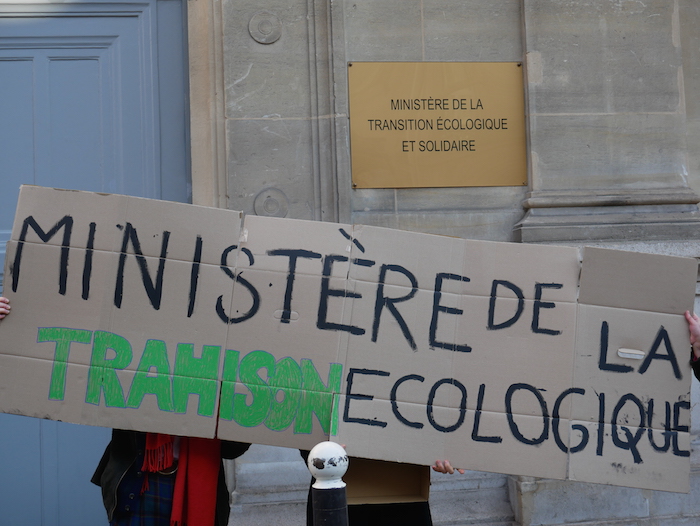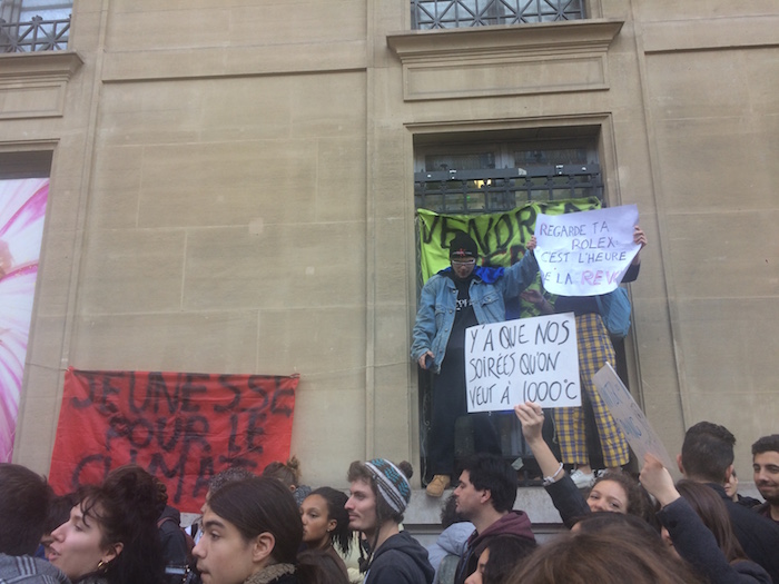 Dans l'assemblée, Reporterre a rencontré des élèves des universités de Paris 1 Panthéon-Sorbonne, de Paris-Descartes, du lycée Saint-Exupéry de Mantes-la-Jolie, de l'Inalco, de Science-Po Paris... Après des matinées passées pour certains à tracter ou proposer des ateliers de sensibilisation dans leurs lycées, le rendez-vous était fixé à 14 heures devant le ministère de la Transition écologique. « Le mot d'ordre du jour consistait à faire le plus de bruit possible devant le ministère », a expliqué Estelle, 20 ans, bruxelloise et étudiante en droit-philo à la Sorbonne. « On essaye de se faire entendre d'une manière ou d'une autre. C'est organisé par les étudiants, aucune ONG ou association n'est derrière le mouvement. »