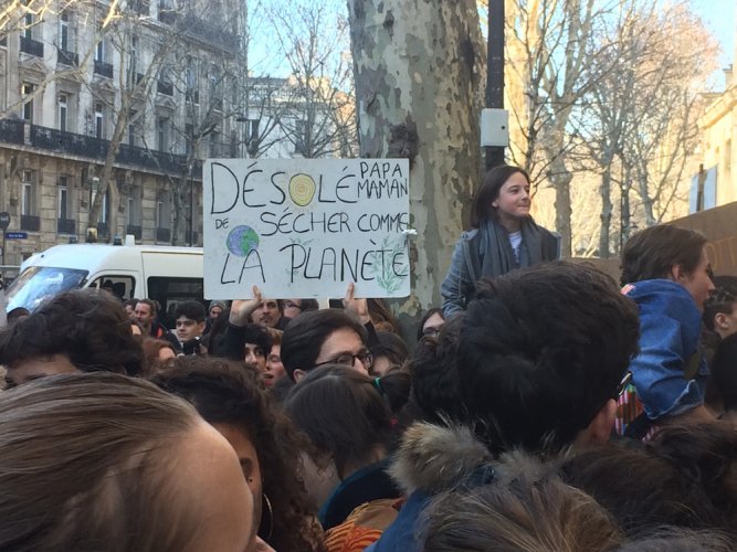 Pour la première fois en France, les étudiants et lycéens français appelaient à suivre le mouvement international de la grève du vendredi pour le climat. Ils étaient plus de 500 à se retrouver devant le ministère de la Transition écologique, à Paris, afin de faire pression pour obtenir des mesures face à l'urgence climatique.