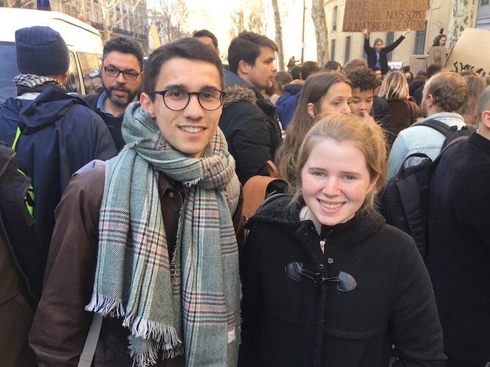 Coline et Grégory, eux, ont plutôt le profil scientifique. Ils sont élèves ingénieurs à l'École des Mines de Paris. « Dans notre cursus, on est rapidement sensibilisés aux enjeux de la transition écologique, mais il apparaît urgent de modifier les programmes scolaires pour sensibiliser les plus jeunes à l'urgence du changement climatique », demande Grégory. « Il faut qu'on se mobilise, pour montrer que la jeunesse est prête à prendre des mesures importantes face au réchauffement climatique », reprend Coline, avant que notre entretien soit interrompu par une nouvelle volée de slogans.