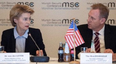 Au cours de la Conférence sur la Sécurité de Munich 2019, le secrétaire US à la Défense, Patrick Shanahan, a réuni les principaux alliés (y compris l'Iraq et la Turquie) et leur a demandé de prendre le relai en Syrie. Il a requis de maintenir 1 500 hommes au Nord-Est du pays assurant qu'une reprise du territoire par Damas ne serait pas un gage de stabilité.
