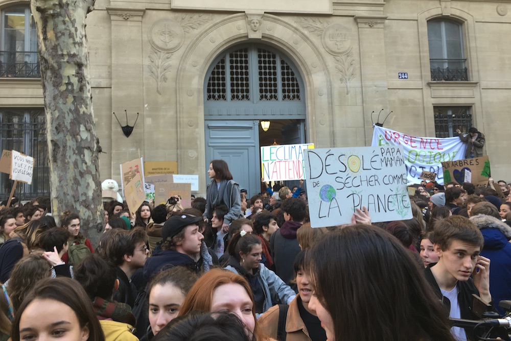 Puisque notre gouvernement s'acharne à demeurer inerte devant la catastrophe écologique, nous, lycéen·ne·s et étudiant·e·s, avons décidé de lui poser une série d'ultimatums punitifs. La semaine dernière, en guise de première leçon, nous avions demandé le respect immédiat des Accords de Paris (réduction des émissions de gaz à effet de serre de 4 % par an minimum) et l'inscription dans la Constitution, à l'article premier, du fait que « La France est une République indivisible, laïque, démocratique, sociale, solidaire et écologique ». Pour châtier le mutisme de ce mauvais élève, nous étions plus d'un millier à faire la grève et à nous réunir devant le ministère de la Transition écologique et solidaire vendredi 15 février. Alors que François de Rugy se félicitait dans la presse que la jeunesse manifeste devant son ministère pour « marcher main dans la main » avec lui, la présence policière démesurée laissait penser que nous dérangions quelque peu. Il ne fait aucun doute que cette réponse par voie de police a convaincu tous les jeunes présent.e.s de la compétence et de l'efficacité du ministère en matière écologique.