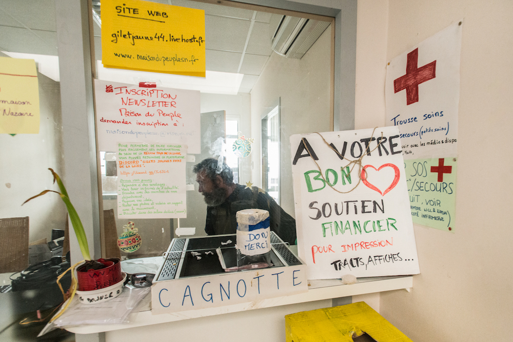 Depuis près de trois mois, les Gilets jaunes vivent dans des bureaux inoccupés de Saint-Nazaire. Cette « maison du peuple », bruissante de diversité sociale et d'échanges, sert de base logistique au mouvement. C'est là qu'aura lieu, en avril, la prochaine « assemblée des assemblées ».