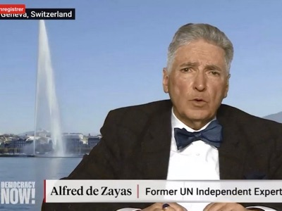 Alfred de Zayas : Tout d'abord, Amy, je suis très honoré de participer à votre programme. Je soutiens tous les propos que vient de tenir mon collègue, le professeur Tinker Salas, un expert en la matière.