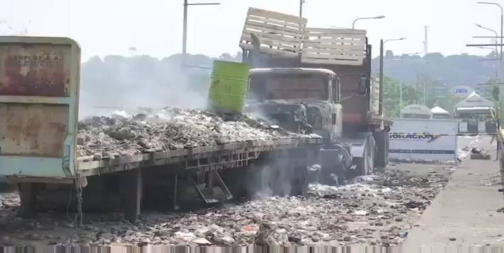 La journaliste Madelein García de Telesur a publié dimanche des vidéos sur lesquelles on peut voir les membres de la Garde Nationale Bolivarienne inspecter les restes des camions et qui montrent que parmi les cendres, il y avait du matériel qui peut être utilisé pour fomenter des “guarimbas” ou protestations violentes similaires à celles qui ont eu lieu en 2014 et en 2017 dans le pays.