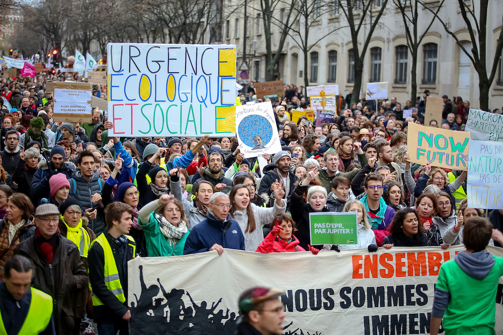 Depuis l'été 2018 et la démission de Nicolas Hulot, le mouvement climatique est en plein essor. Les marches du 8 septembre, du 13 octobre et du 8 décembre ont connu un franc succès, rassemblant chacune plus de 150.000 personnes. Plus de 2 millions de personnes ont soutenu le recours de l'Affaire du siècle, dénonçant l'inaction de l'État en matière climatique. En parallèle, les émissions de gaz à effet de serre et les températures ont augmenté, la biodiversité a poursuivi son déclin et les inégalités se sont aggravées.