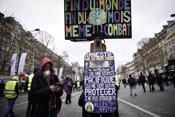 « Le climat, ça nous concerne tous, dit Jean, Gilet jaune. Mais c'est vrai que parfois, les bobos écolos ne comprennent pas la lutte qu'on mène, nous, les Gilets jaunes. » À ses côtés, Claude, venu de Sète, acquiesce. « Mais c'est bien qu'on marche ensemble malgré nos différences, il n'y a qu'en étant nombreux qu'on fera bouger les choses. Et là, regarde, on est si nombreux. »