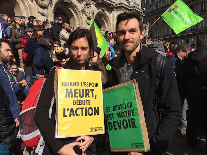 Violeta et Arnaud sont venus avec le mouvement Extinction Rebellion. Violeta : « J'étais à la marche des jeunes hier, c'était émouvant, ils ont de l'énergie, tout le monde s'identifie à eux et ils sont à peine entrés dans la consommation : ils peuvent changer plus facilement que les adultes. »