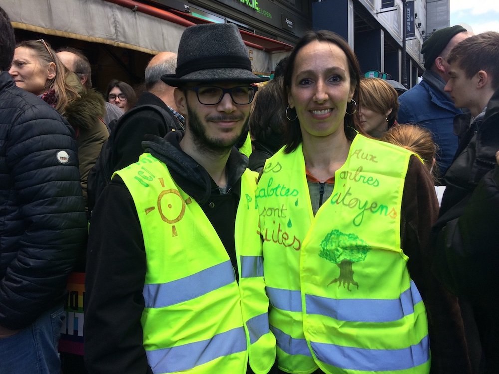 Cécile et Thibault, intérimaires, sont venus de Vendôme, dans le Loir-et-Cher, parce que « c'est la fin du "grand débat", les quatre mois des Gilets jaunes et la manif climat ». Ils ont participé à plusieurs manifestations de Gilets jaunes à Paris et ont trouvé que le rapport à la police y était très dur. Aujourd'hui, ils sont ravis de voir autant de monde, et un peu en colère également devant la différence de traitement policier des manifestations de Gilets jaunes et de celle du climat.
