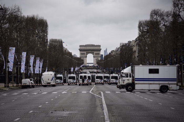 Ainsi, d'après notre reporter présent à Paris près des Champs-Élysées, les rues jouxtant les lieux de pouvoir sont filtrées par les CRS. Rue du faubourg Saint-Honoré, les sacs sont scrupuleusement contrôlés. Sans circulation de voitures, les rues de la capitale sont pour le moment tranquilles.