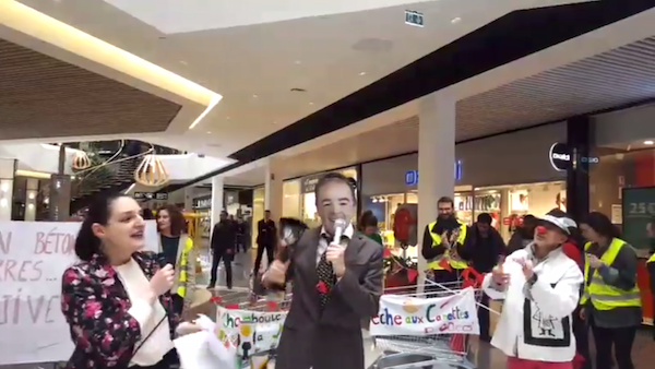 Villeneuve d'Ascq, Nord, Twitter, 11h00 Les inCOPruptibles participent avec le Collectif pour le triangle de Gonesse à l'occupation du centre commercial Auchan V2/ Avec ANV-COP21, Alternatiba et les Amis La Terre, il s'agit de dénoncer l'acharnement de M. Vianney Mulliez, membre du directoire d'Auchan Holding, à promouvoir le projet EuropaCity.