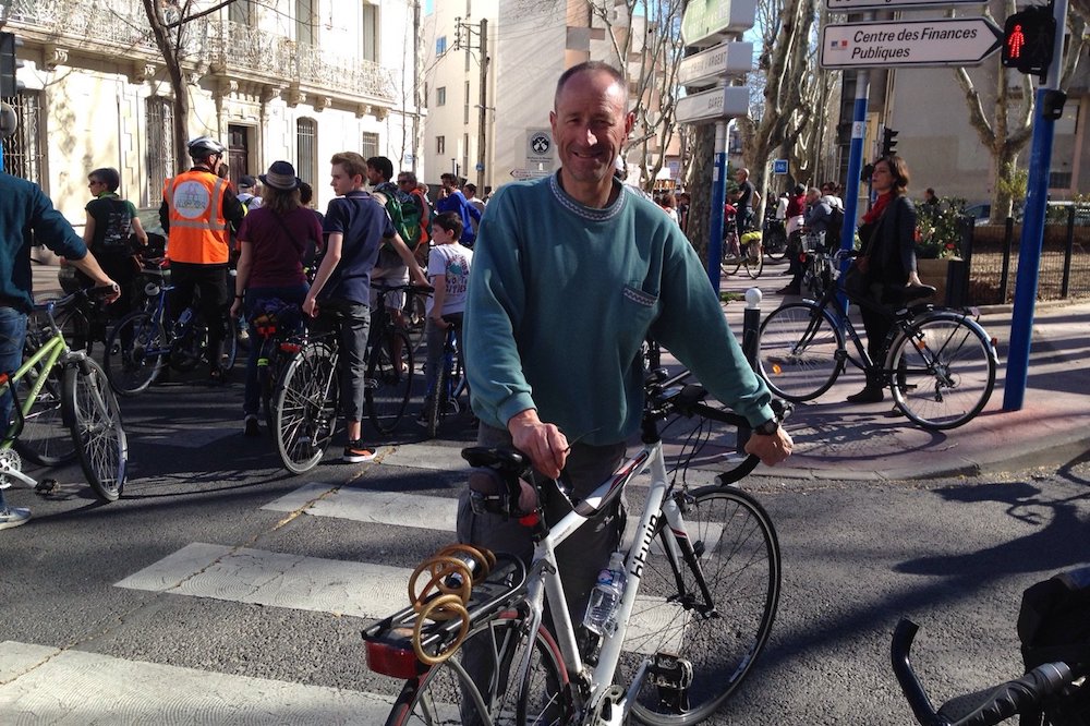 Montpellier, 18 h Même si les vélos n'ont pas constitué un cortège à part, la Vélorution est « immense succès », d'après François, venu de Clapiers, au nord de Montpellier, avec « 154 » autres cyclistes. « Nous voulions insister pour la solution vélo dans la lutte contre le changement climatique : contre l'encombrement des villes, contre la pollution, le vélo, c'est bon pour la santé et pour le porte-monnaie. À Montpellier, il pourrait et devrait avoir une plus grande place, mais les infrastructures étant insuffisantes, il n'y a que les cyclistes les plus enthousiastes qui circulent. On pourrait faire aussi bien que Strasbourg, la championne des villes en matière cyclable. »
