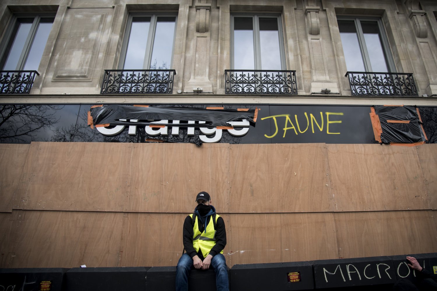 À l'image d'Orange, l'écrasante majorité des grandes enseignes présentes sur l'avenue ont tenté de protéger leurs vitrines en les couvrant de planches de bois. Plusieurs ont été taguées et arrachées pour nourrir feux et tentatives de barricades.