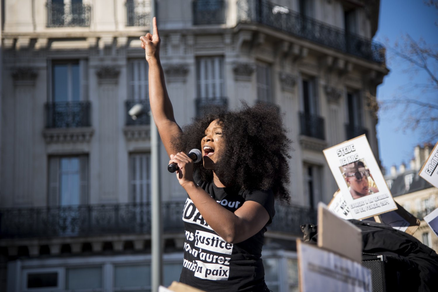« La marche des solidarités », devançant de quelques encablures la « marche du siècle », est passée par la place de la République. Les manifestants ont levé des poings serrés. Au micro, Assa Traoré, du comité Justice pour Adama, a scandé : « Pas de justice, pas de paix », reprise par la foule. Le cortège a poursuivi son chemin boulevard de Magenta, en direction de Stalingrad.