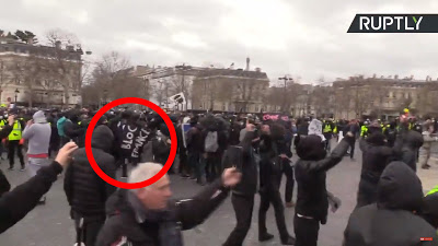 Pendant ce temps, 80 magasins sur les Champs-Elysées sont saccagés, les black blocs circulent sans entraves et sont extrêmement nombreux – la technique des « interpellations préventives », appliquée aux Gilets Jaunes, ne leur semble pas ici avoir sa place … Etrange.
