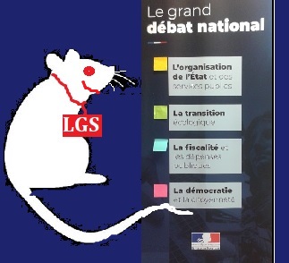 - J'irai pas, a décrété la petite souris. Macron a déjà décidé des 4 thèmes sur lesquels on va parler : transition écologique, fiscalité et dépenses publiques ; démocratie et citoyenneté, organisation des services publics. Rien sur la prolifération des trous dans l'Emmenthal et sur la violence de la BAR (Brigade anti-rongeurs) !