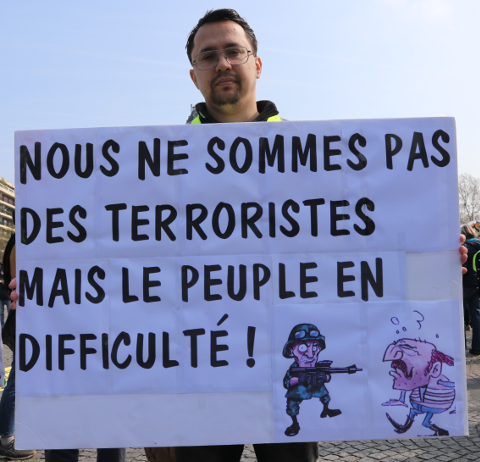 Même hostilité de la part d'un étudiant gilet jaune qui a mis en avant la répression policière pour expliquer sa présence à la mobilisation parisienne: «On nous dit souvent que ce mouvement s'essouffle. Mais ce n'est pas le rôle de l'armée de faire du maintien de l'ordre de tirer sur les gens. On a déjà assez les CRS qui tapent sur les gens ça c'est déjà assez. Je trouve que des gens qui tirent à balles réelles, pour moi, c'est juste de la dissuasion... Mais dans ce cas pourquoi envoyer l'armée? Ce mouvement ne plaît pas du tout. C'est juste pour faire peur, pour changer l'opinion publique. Mais là, l'opinion publique est là avec nous. ».