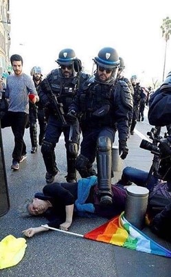 Et, puisqu'elle semble ne plus vouloir se donner de limites, la police s'en prend même aux Street medics, qui pourtant sont les premiers à soigner un policier faisant un infarctus en pleine manifestation. Le témoignage d'un secouriste niçois disant que la police les empêche volontairement de porter secours aux blessés et, dans ce cas, à cette vieille femme blessée à la tête. Autre témoignage et là aussi