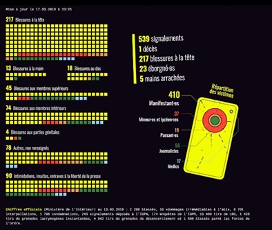 Tableau de recensement des violences policières tenu par le journaliste David Dufresne.