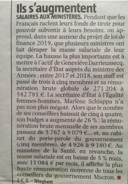 Pendant ce temps les ministres s'augmentent, le plus discrètement possible bien sûr. C'est un article en dernière page de la Voix du Nord qui va nous l'apprendre.