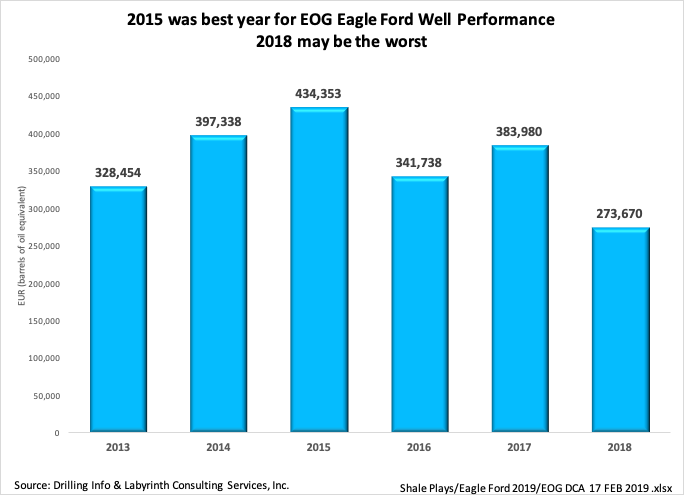 Art Berman @aeberman122015 fut la meilleure année pour la performance des puits d'EOG pour ses puits dans l'Eagle Ford. 2018 pourrait être la pire. #OOTT #oilandgas #oil #WTI #CrudeOil #fintwit #OPEC