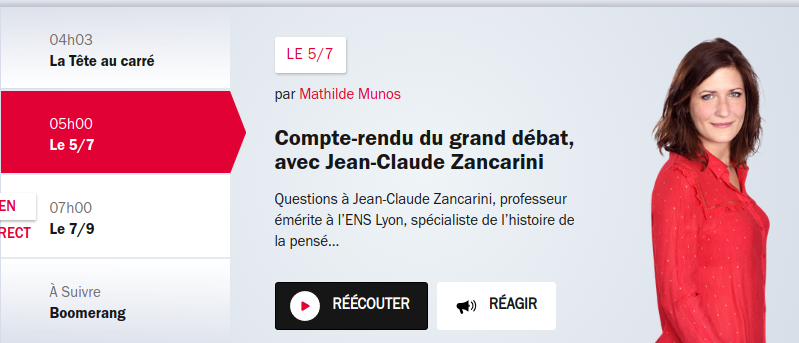 Comme le révèle ce matin sur France Inter, par exemple l'intervention du professeur émérite de Lyon Jean-Claude Zancarini, il ressort du vrai débat, 4 grands blocs de revendications importantes et massives :