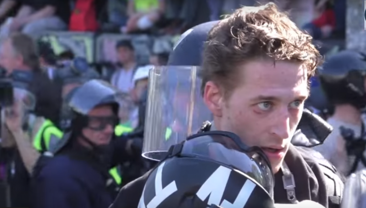 Plus tard, M. Glanz a cherché à parler au commissaire pour se plaindre d'avoir été visé par une grenade. Comme le montre la vidéo ci-dessous, le journaliste ne peut pas parler au commissaire, il se fait violemment pousser par un policier, et dans un réflexe de colère, fait un doigt d'honneur. Des policiers se précipitent alors vers lui et l'emmènent.