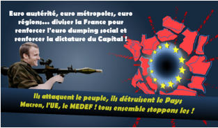 Avec en outre, pour dessiner un débouché politique au mouvement, un large débat sur l'exigence que la France sorte de l'UE par la voie progressiste sans crainte de mettre en cause le système capitaliste qui asservit le monde du travail, assèche la démocratie et détruit notre nation.
