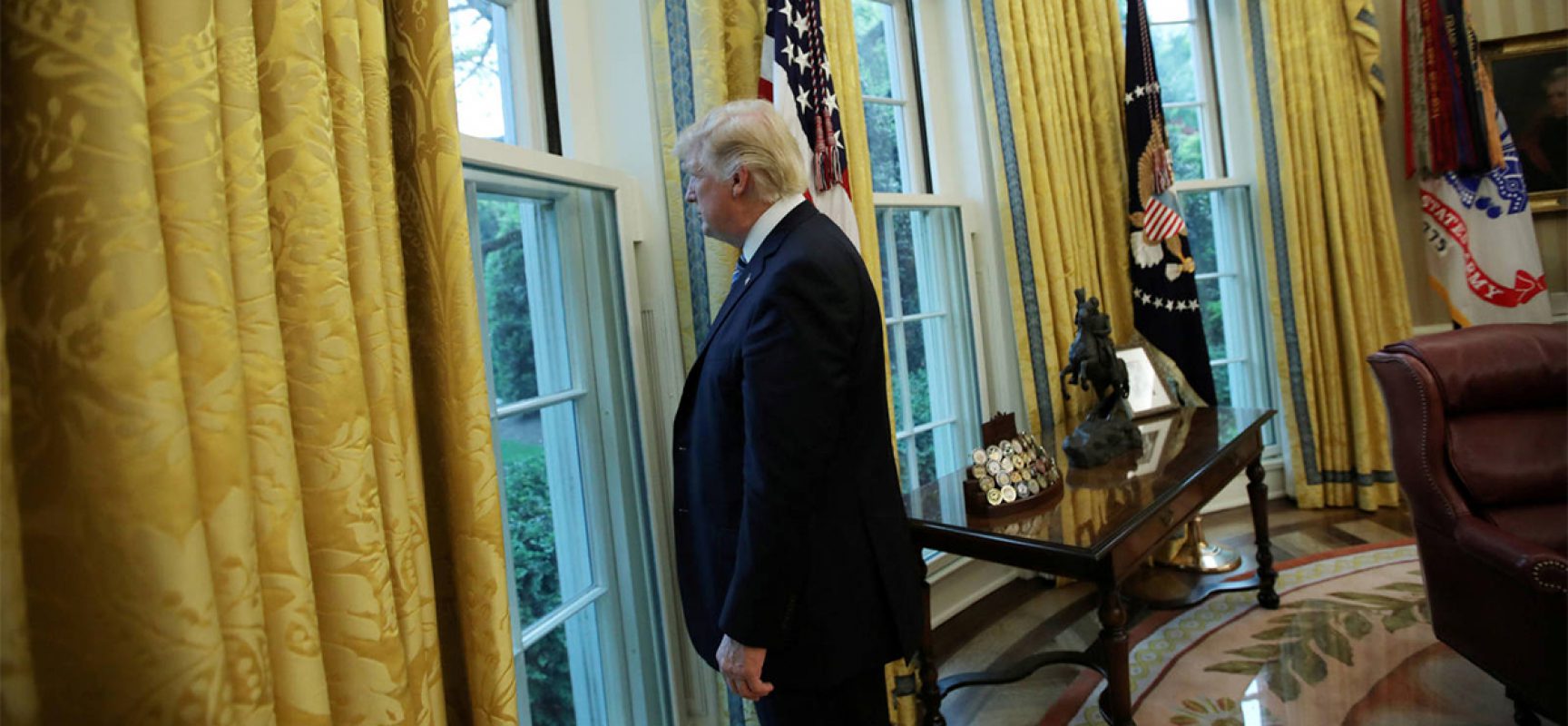 Au vu du slogan « America First » proclamé par le président, la politique hémisphérique développée par d'autres présidents étatsuniens pour assurer leur propre rôle de puissance mondiale n'apparaît maintenant que comme une stratégie de défense.