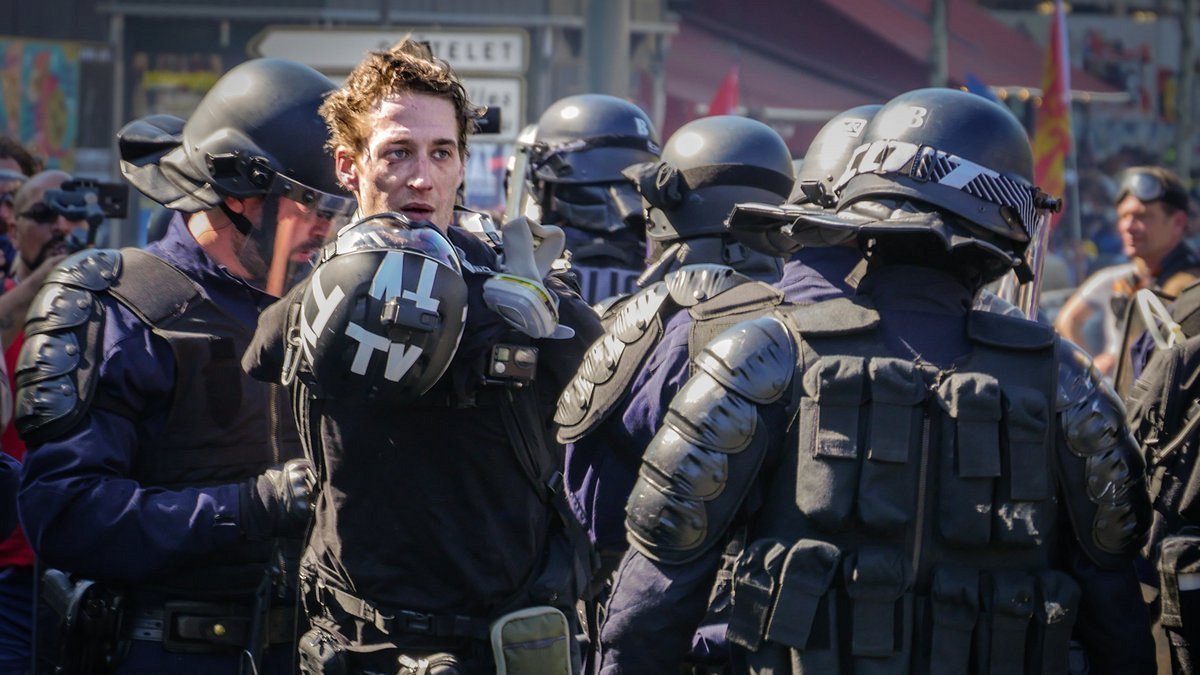 Mais c'est qu'on ne saute pas comme ça par-dessus la division du travail et qu'il faut compter avec les manars : les photographes et journalistes de terrain qui ramènent « de quoi ». Pendant que les importants, vissés au fauteuil, se réservent l'éditorial et la péroraison - il se pourrait que la lutte des classes, objet de dénégation universelle dans les médias, y ait un certain avenir. Car, de Taranis aux porteurs de carte de presse qui n'avaient pas moins envisagé de porter plainte contre les violences policières fin 2018, se découvre toute une zone grise du journalisme prolétarisé, moitié dehors moitié dedans, qui prend les risques, fait le travail... pour en voir les produits salopés dans les étages - formidable court-circuit des images de l'arrestation de Gaspard Glanz, où l'on voit un autre journaliste se prendre lui-même une charge des CRS alors qu'il travaille... pour Le Figaro ! Et si, à force de grenades de désencerclement et de visées au LBD, les manars de la presse finissaient un jour par renâcler ? Peut-être même à exiger qu'on montre ?