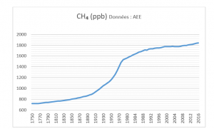 Graphique 1 - Concentration atmosphérique de CH4 en parties par milliard (ppb)